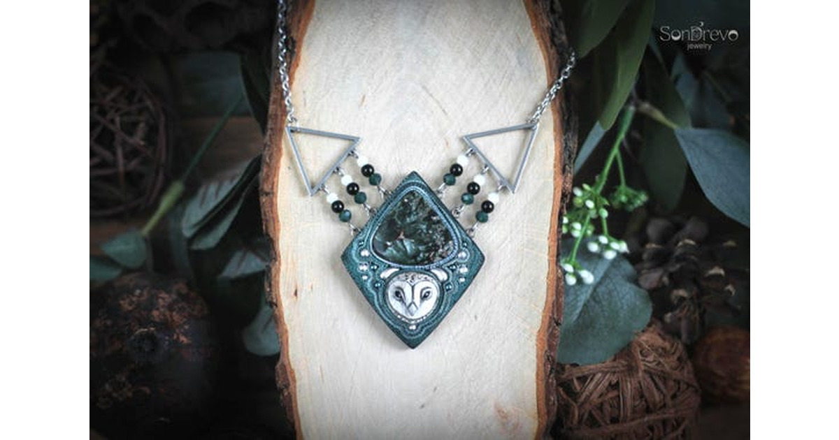 Information for US buyers: Delivered Duty Unpaid (DDU) is used. You will not have to pay duty upon receipt. An unusual fairy necklace with a barn owl. Made of polymer clay by hand, in a single copy. Jewelry is complemented by beads made of glass and seraphinite. A necklace will be a good gift for a lover of owls and a lover of unusual jewelry. Materials: polymer clay, seraphinite, glass beads, stainless steel. Size: 1.8*2.3 inch (4.5*6c... More >