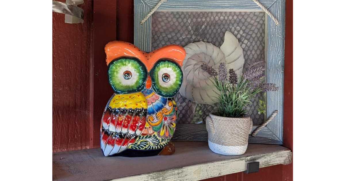 Ceramic Owl Planter is Colorful Talavera Pottery as an Indoor Flower Pot or Outdoor Owl Decor Mexican Planter & Plant Pot good for Home or Gareden Decor Makes a Great Owl Gift for Bird Lovers Introducing our new Talavera Owls, a captivating fusion of vibrant colors and intricate patterns. Handcrafted with meticulous attention to detail, this enchanting ceramic masterpiece showcases the traditional artistry of Talavera pottery, makin... More >