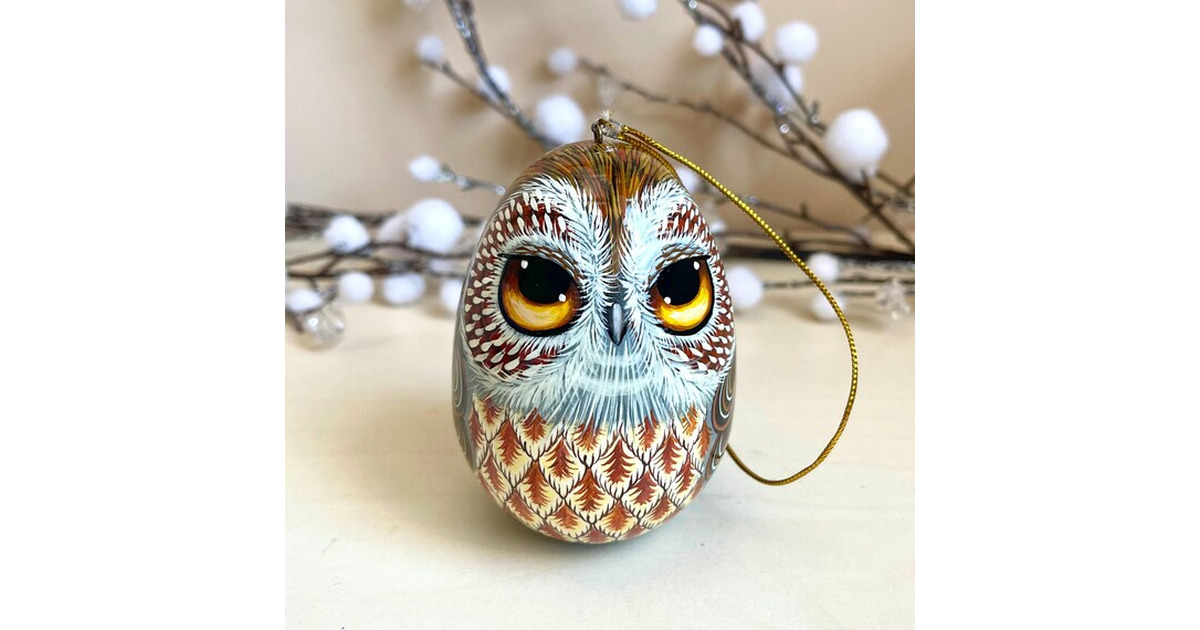 READY TO SHIP ………………………. The egg box with owl’s design is a handmade product by Ukrainian artist. The egg opens and you can store earrings, beads and other jewelry in it. I also make special accessories so you can hang this owl on your Christmas Tree and hide a small surprise gift inside. Ask your child to find the surprise on the tree and you will give him... More >