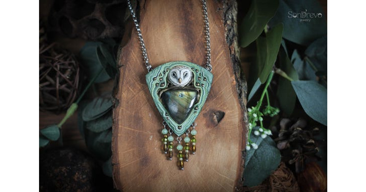 Information for US buyers: Delivered Duty Unpaid (DDU) is used. You will not have to pay duty upon receipt. Barn owl necklace. Made of polymer clay, supplemented with labradorite and glass beads. This necklace will be an excellent gift for the lover of owls and unusual jewelry. Materials: polymer clay, labradorite, glass beads, stainless steel. The size: 8*5 cm (3.2*2 inch) (with beads), length - 44 cm (17 inch). This pendant in a singl... More >