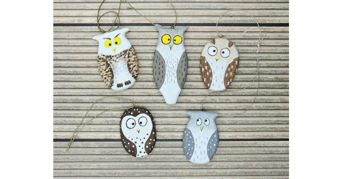 It is a set of 5 funny owls, made of light balsa wood and painted with acrylic paints. Height: from 7 cm ( 2.7"), to 12 cm ( 4.7"), thickness - 1 cm ( 0.4"). Ready to hang. More >