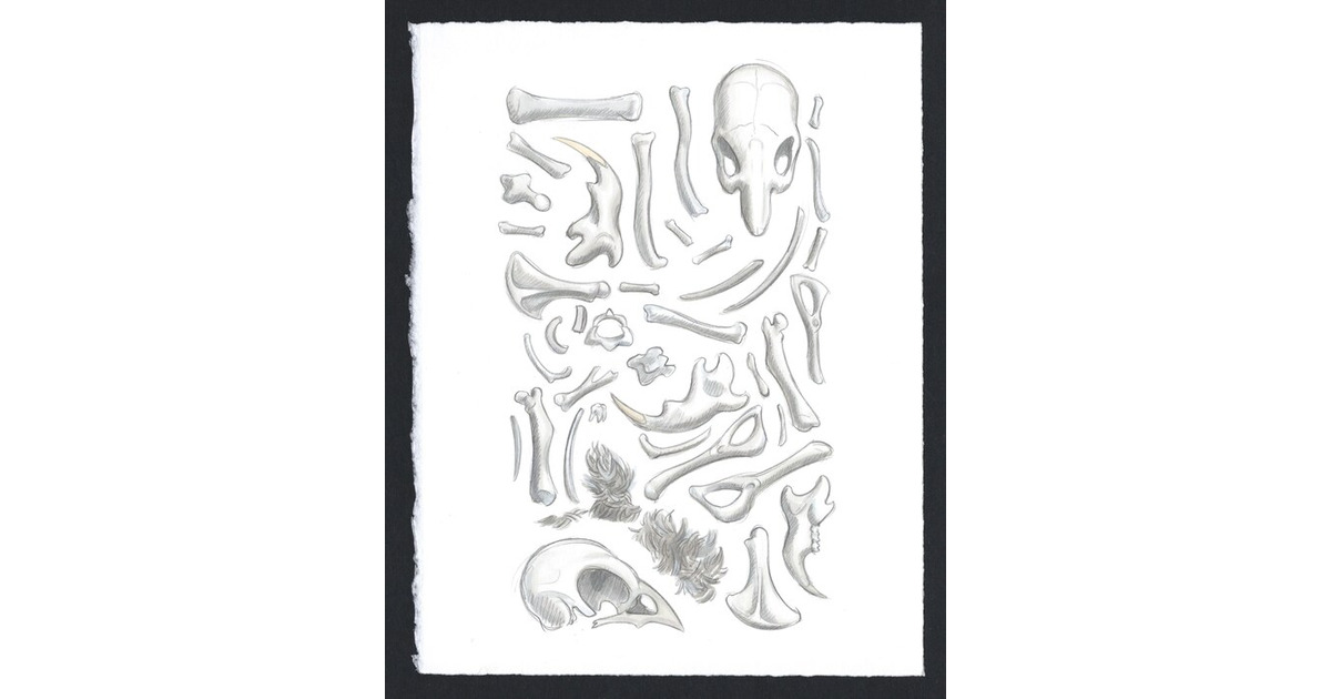 - Original watercolor & pencil sketch of the contents of an owl pellet, neatly arranged. - Drawn for Jada's book, "The Forest Revealed" - Shipped in a protective clear plastic sleeve. - 8.5 X 11 inches - Back of artwork is signed by artist. - Please request if you would like the front signed as well. More >