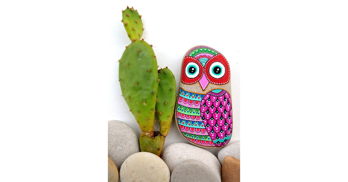 ORIGINAL and "ONE OF A KIND" HAND PAINTED BEACH STONE *Published in the Book "Art on the Rocks" by F.Sehnaz BAC All artworks copyrighted © F. Sehnaz Bac. All my original designs on stones are hand painted and drawn, using acrylic paint, ink, small brushes and paint pens with extra fine tip. No stencils are used. All designs are created with my imagination. My paintings on the stones are protected with high qual... More >