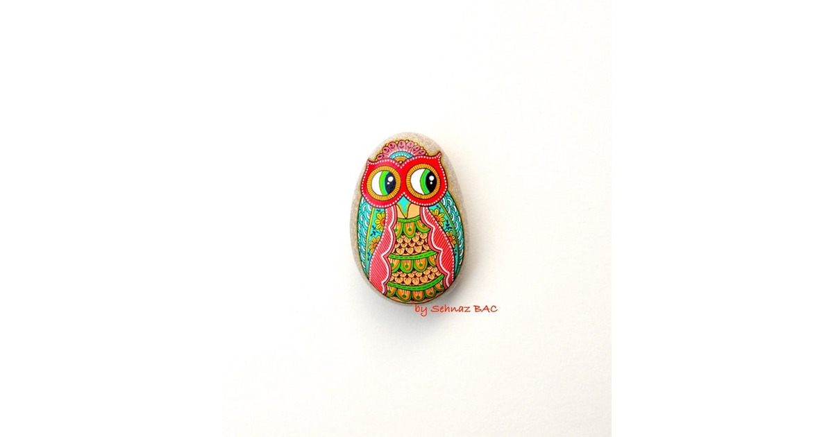 ORIGINAL and "ONE OF A KIND" HAND PAINTED BEACH STONE All artworks copyrighted © F. Sehnaz Bac. All my original designs on stones are hand painted and drawn, using acrylic paint, ink, small brushes and paint pens with extra fine tip. No stencils are used. All designs are created with my imagination. My paintings on the stones are protected with high quality acrylic matte varnish, please handle with care- scratching, pick... More >