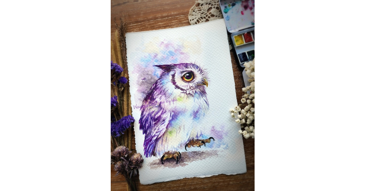 Slow step ORIGINAL watercolour painting 7.5x11 inches,Hand-painted by Yui Chatkamol,fantasy,owl art, minimalist,Contemporary,gift,Wildlife