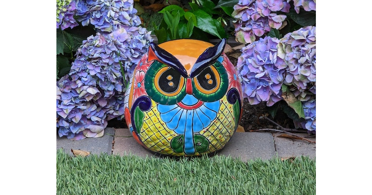 > Talavera Planter, Super Cute & Colorful Ceramic Owl Flower Pot > Great for Indoor or Outdoor Usage > Talavera Pottery is Handmade and Hand Painted in Mexico > Large Pot Measures 9.5" Tall by 8" Wide by 6.5" Deep; Weighs 2 lbs 15 ounces > Medium Pot Measures 6.5" Tall by 6.5" inches Wide by 5.5" Deep; Weighs 2 lbs 6 ounces > Contains a hole in the bottom for drainage > Handmade Con... More >