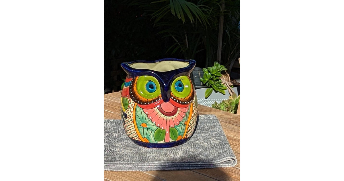 Gorgeous 11.5" Tall Owl Flower Pot is Ceramic Talavera Planter from Mexico Handmade Pottery is Outdoor Garden Decor & Yard Art or Colorful Indoor Home Decor Unique Gift for Birders > Measures 11.5" Tall by 10.5" inches Wide by 10.5" Deep; Weighs approximately 7.6 lbs. > Contains a hole in the bottom for drainage. It's really tough to source these gorgeous Talavera Owls especially ones hand painted as n... More >