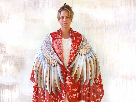 Cherry ~ Owl Scarf, Festival Clothing, Women Scarf This unique bohemian wings and Owl bird feathers shawl features: Owls have always been one of the most enigmatic of symbols through history and across many cultures. Perhaps it is the innate fascination of a nocturnal bird and the beauty and majesty of its command of the silent night. The ancient Greeks associated owls with wisdom and her symbol was widespread. Native Americans consider... More >