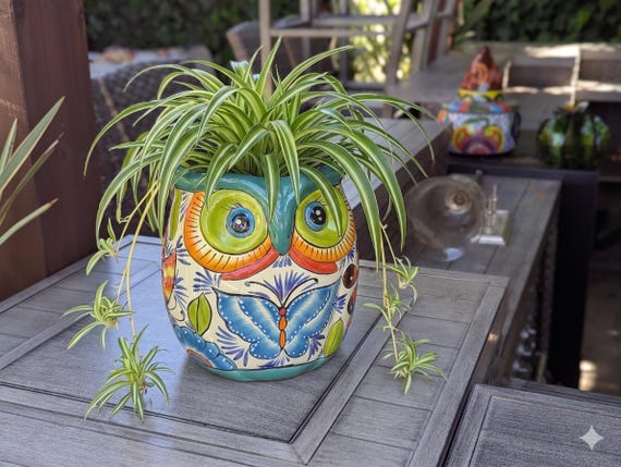 Bring a touch of handcrafted, artisanal Mexican-art elegance to your home with our Talavera Owl Planter. Hand-painted by master artists in Mexico, this isn't just a flower pot—it’s a conversational centerpiece piece. Each planter features the vibrant colors and intricate geometric patterns classic to authentic Mexican ceramic pottery. Whether standing guard in your entryway or nesting among the plants on your patio, this... More >
