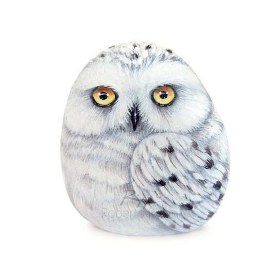 An Elegant Snowy Owl Hand Painted on a Sea Rock! A Unique Piece of Art and a great Gift Idea for all of you, owl lovers! My handpainted stones are unique pieces of art. I paint all of them on smooth sea rocks with high quality acrylics and tiny brushes. They may be used as a paper-weight to cheer up your desk, lucky charms, decoration for furniture and gardens or whatever you desire. They are FINELY DETAILED, protected with a strong tra... More >