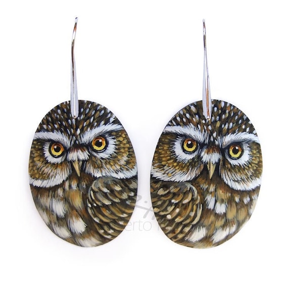 Wonderful Unique Hand Painted Little Owl Earrings! Painted with acrylics, nickel free, signed on the back and protect with a satin final varnish. You will look wonderful with these unique hand painted Owl Earrings! They are perfect for any age and style, can be easily matched with all types of clothing, extremely strong but also very light and comfortable. Meticulously finished in every detail, nickel free hooks and accompanied by a Cer... More >